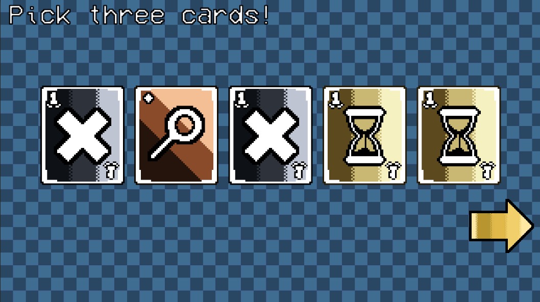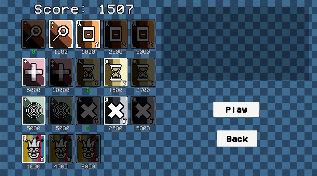 At the end of every turn, you get to pick some special cards that will make things easier. You can use the points you accumulated to unlock more of these cards. You can choose 3 out of 5 random unlocked cards every turn.
